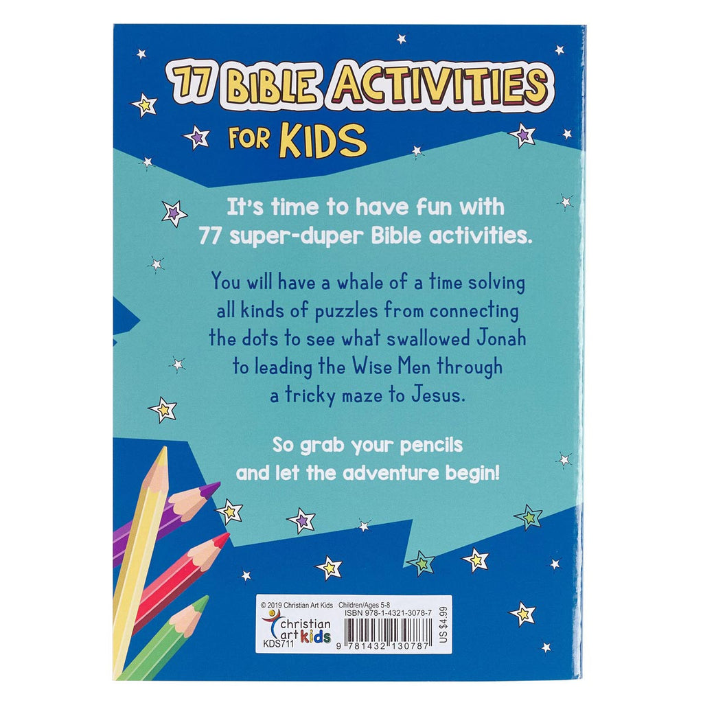 77 Bible Activities for Kids is an educational and entertaining Scripture-based activity book for kids aged 5-8, filled with fun mazes, puzzles, join-the-dots, word searches and crack-the-code games.