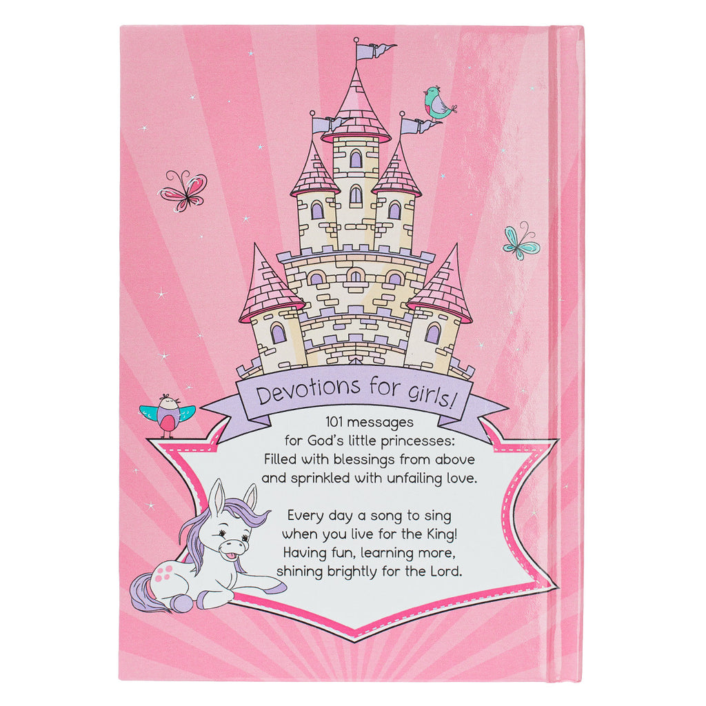 101 Devotions for His Princesses presents 101easy-to-read devotions and explanations of how God's word applies to a young girl's everyday life. The author, Carolyn Larsen, has topically arranged the contents to provide easy reference to issues young girls face. The figures, Holly & Hope, share in the exploration of God's love with your young reader. The padded front hardcover volume has glittery silver foil cover accents. Inside, you will find an attached ribbon page marker and a presentation page for gift-giving.
