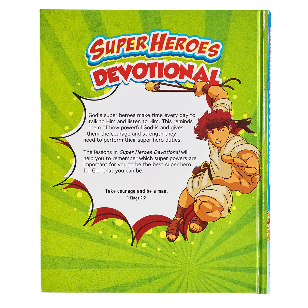 The Super Heroes Devotional, written by Carolyn Larsen and illustrated by Joe Goode, has 101 topics to help God's super heroes grow into great heroes of the faith. They will learn which super powers are important for them to be a super hero for Jesus - like being a good friend, respecting others, telling the truth and many other super hero qualities. Each devotional lesson also has a line from Scripture and a "Remember" note to summarize the key point of the devotional.