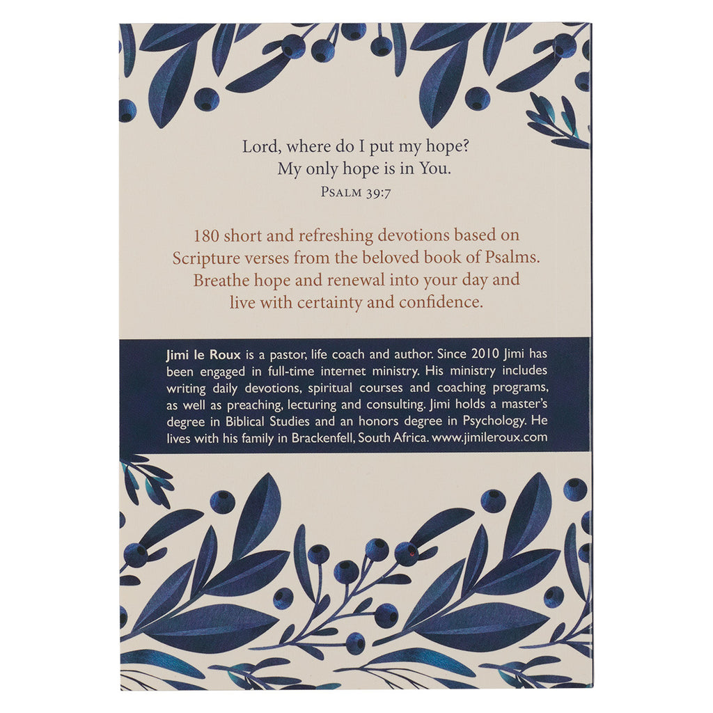 180 short and refreshing devotions based on the beloved book of Psalms will renew your spirit daily. A presentation page in the front of the devotional can be personalized when given as a gift. Topics include the way to blessing, morning prayers, no more fear, you get what you give, you have enough, and many more. The small devotional fits into tight spaces and is easy to pack when you travel or commute.