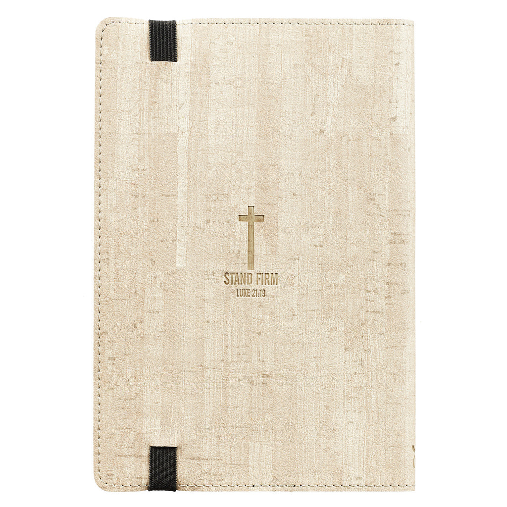 The “Stand Firm Flexcover Dotted Journal with Elastic Closure” is perfect for your friend who makes a list of her to-do lists! It is the perfect place to journal, make to-do lists, plan ahead, set goals and keep track of life. The dotted journal features Scripture from Luke 21:19, “Stand firm, and you will win life,” - the words Jesus' spoke when he referred to His second coming. This comforting promise will inspire a college-bound daughter, a friend who is struggling, or an aging parent. The tan journal is a thoughtful gift anyone can use to ponder life and lists. The pages are covered with equal-spaced dots, which allows you to create lists, format notes, and design drawings.