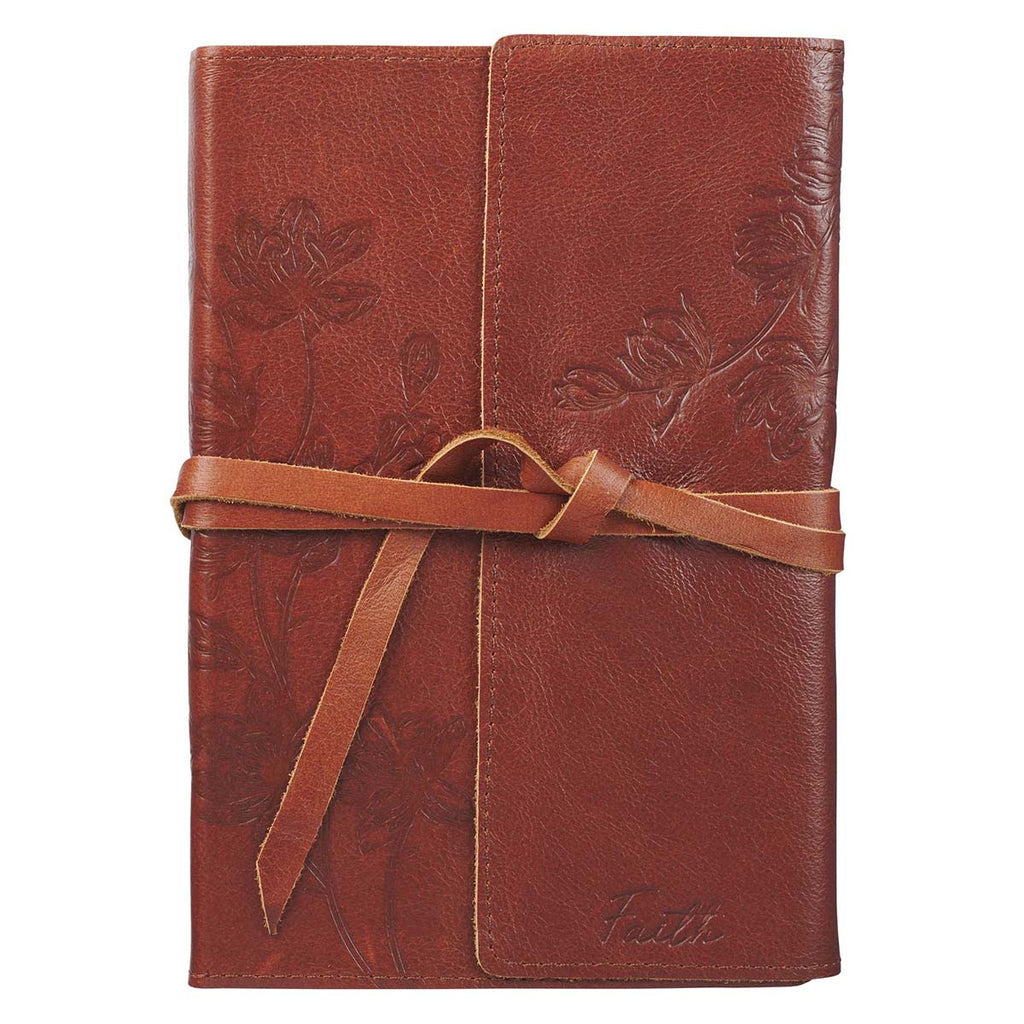 Treat a beloved granddaughter or friend when you give the luxurious Faith Brown Full-Grain Leather Journal with Wrap Closure as a birthday gift.