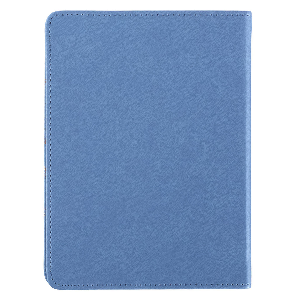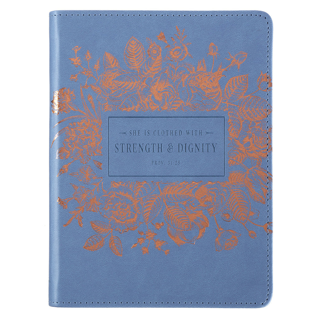 This gorgeously pale blue debossed LuxLeather journal with gold foil accents will become one of your favorite accessories to carry with you. The Scripture verse from Proverbs 31:25, "She is clothed with strength and dignity," will remind that your identity is in Christ and that your strength and dignity is derived from the relationship you have with the Lord. Set aside quiet time in your busy day to be near to God as you spend time journaling prayers and blessings in this beautiful journal.