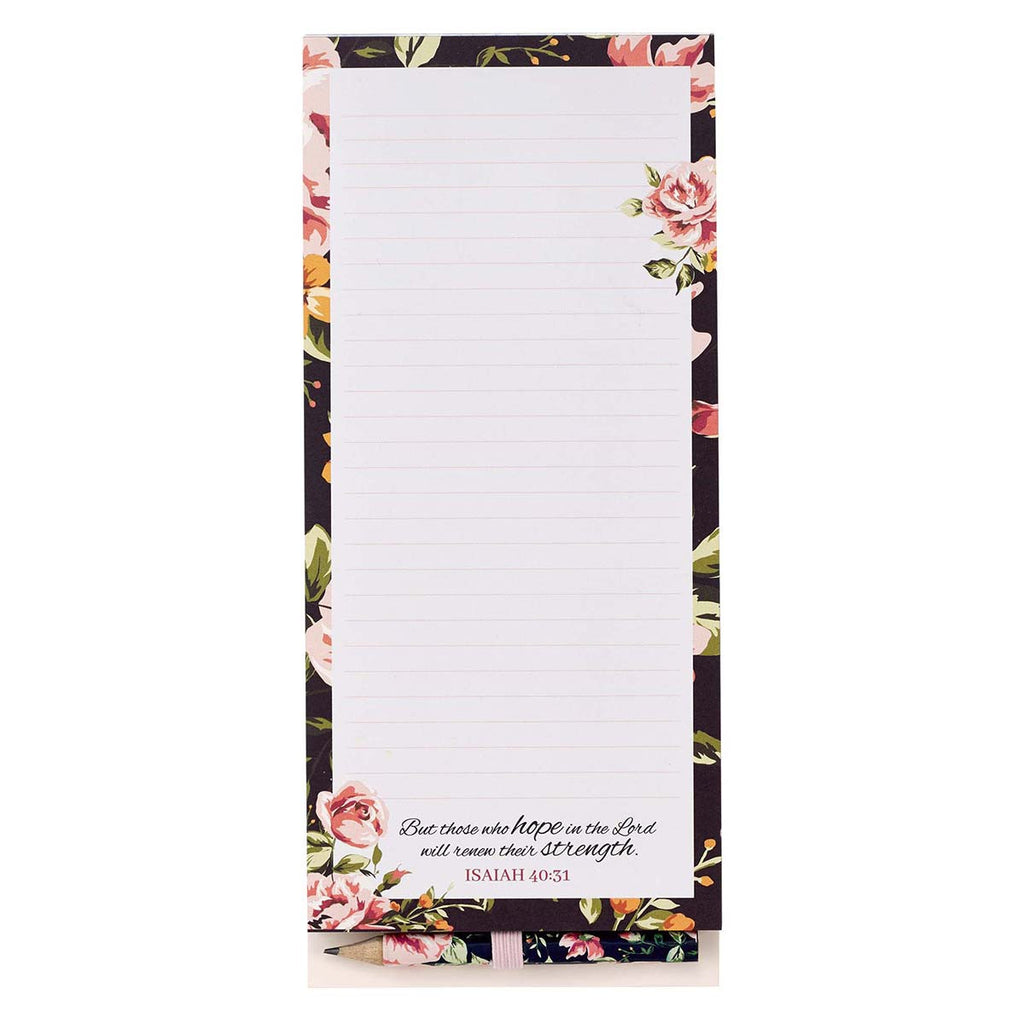 Thrill the list makers in your life with the beautiful Hope in the Lord Magnetic Notepad. They will be delighted to write their shopping or to-do lists with the included pencil on such elegant and inspirational notepad paper.