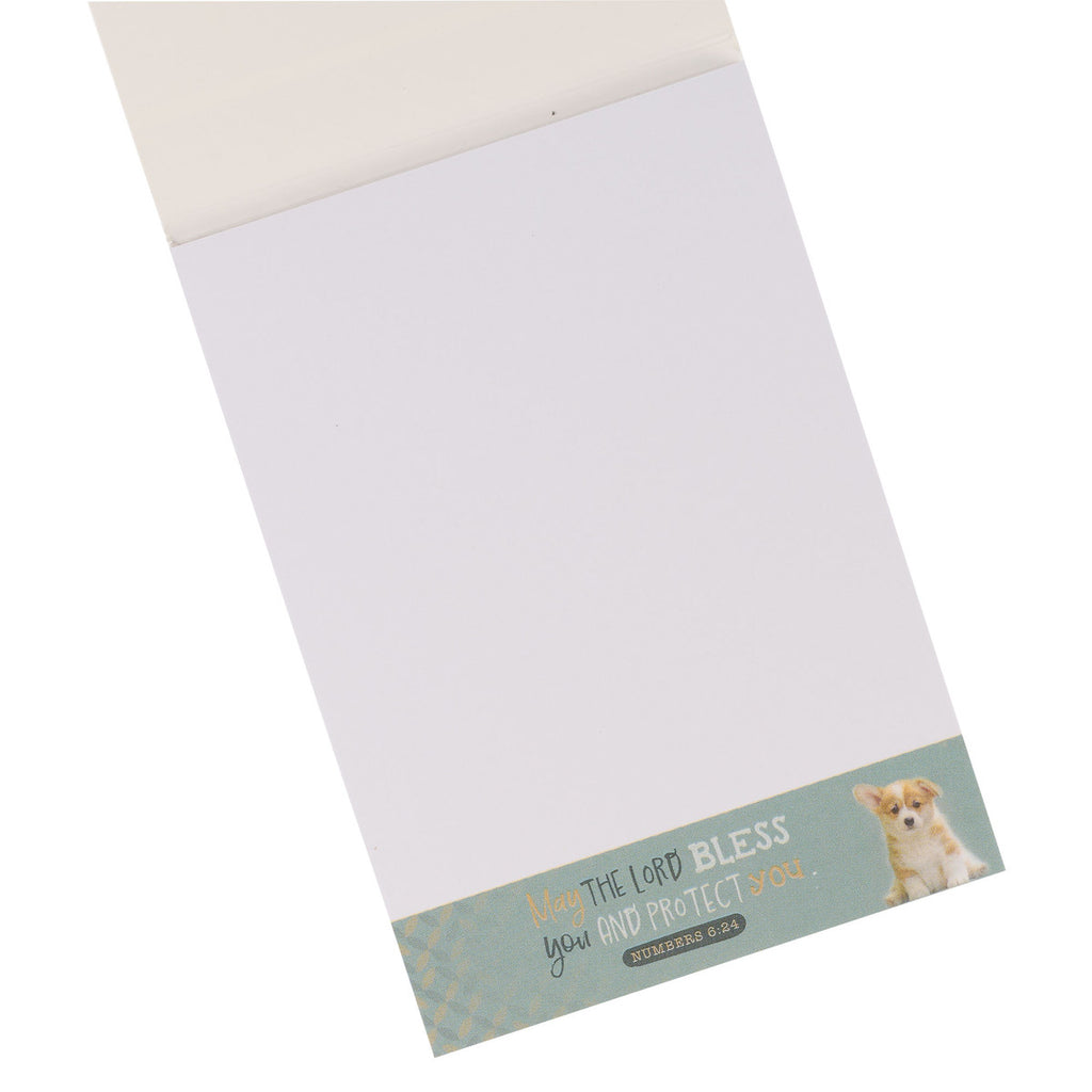 The May the LORD Bless You Green Puppy Notepad is more than just a notepad—it's a beautiful blessing for your day and a useful tool to keep your life organized as you note important details and lists on its pages.