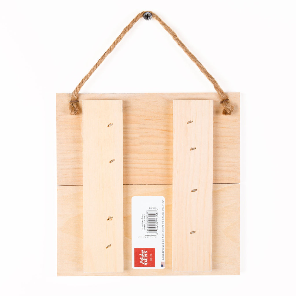 These hanging signs are constructed using two individual pine slats and designed to hang with the addition of jute string. Each sign is adorned with a rustic, weathered background, farmhouse-inspired icons, and features a short, inspirational sentiment.