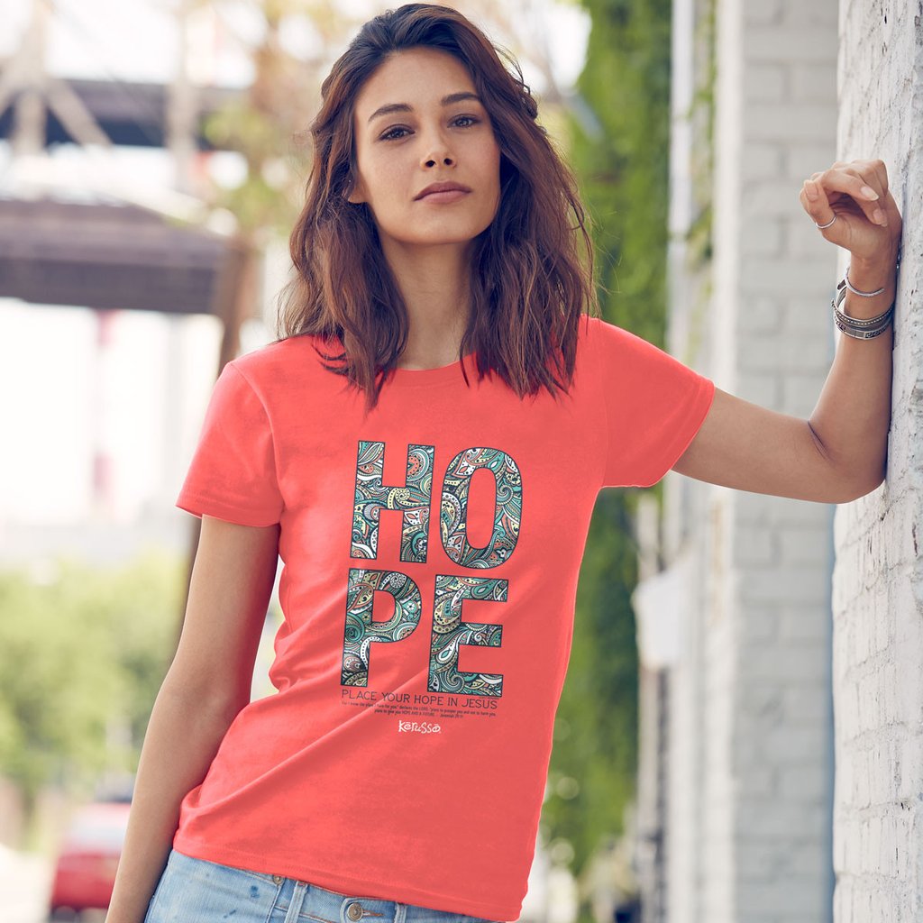 The beautiful color and lively paisley pattern on our œHope Paisley tee is a sweet reminder: you have the blessed assurance of your Heavenly Father holding you up every moment of every day.