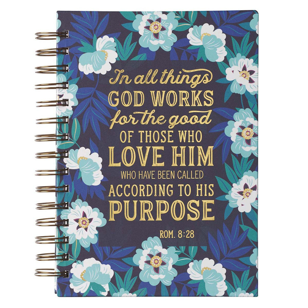 Record your life's journey on the pages of the God Works For Good Blue Floral Large Wirebound Journal to guard your mind against the doubts that creep in when life becomes hard and you face unexpected and unexplained challenges. The sentiment on this wire-bound hardcover journal will bring peace and calm to your soul.