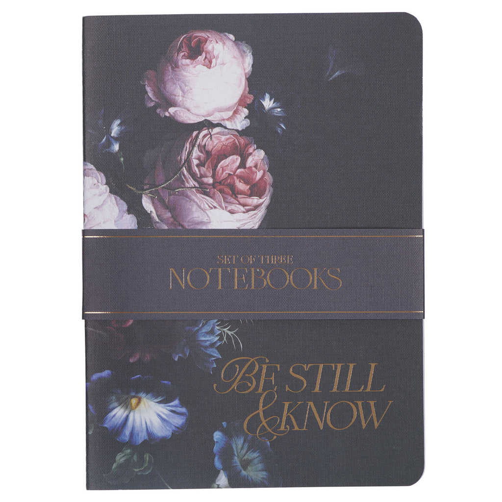 The Amazing Grace Midnight Blue Large Notebook Set is part of the Be Still Midnight Blue Floral Collection that focuses on God's grace and our submission. This collection includes a three-piece notebook set, a ceramic coffee mug, and a zippered faux leather journal.
