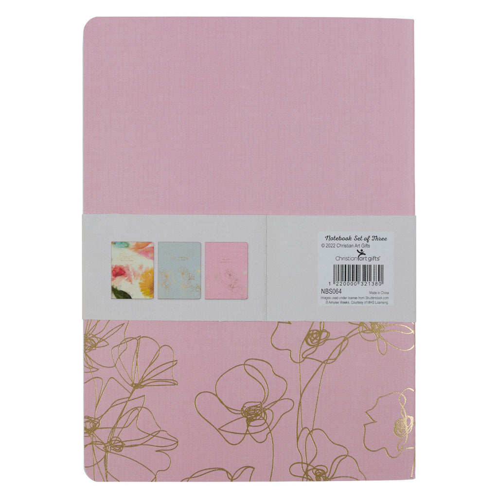 Each notebook in this set contains 64 lined pages—just the right amount for writing down recipes or notes, prayer requests, or bucket lists. A cardstock o-wrap ties the three notebooks together as a set.