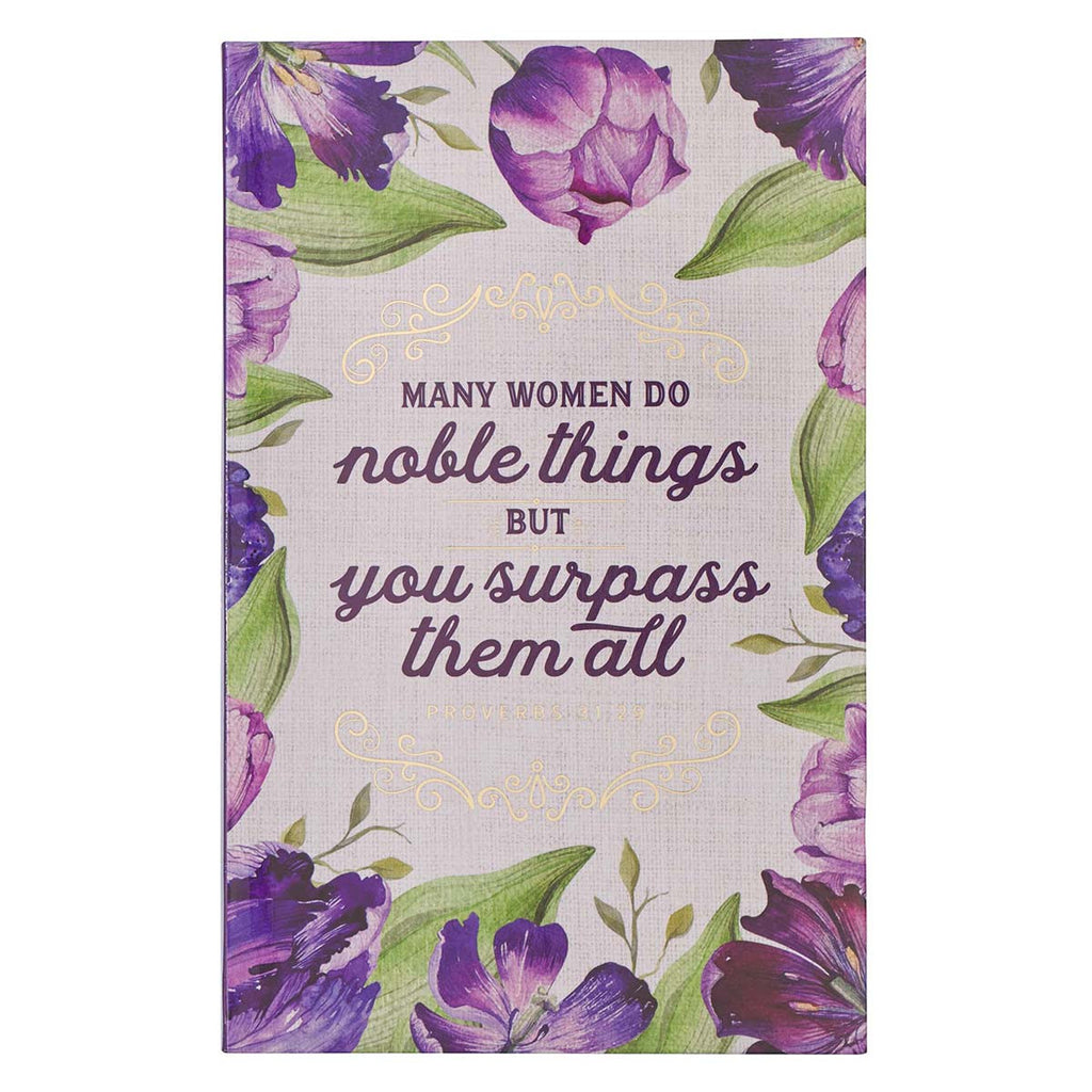 With inspiration from Proverbs 31, the Noble Things Flexcover Journal is a beautiful way to honor a special woman in your life. This flexcover journal creates a perfect place for your wife or mom to have a spot for taking notes, keeping any daily list organized, or to jot down a grocery list. Show her how much you love and respect her through the message found in this well-loved verse from the book of Proverbs.