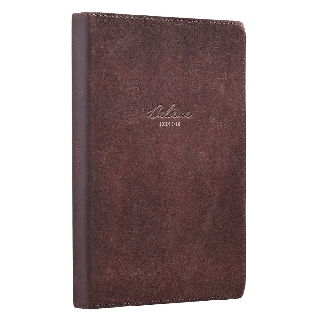 Followers of Christ believe in the great love of God that He showed us by His giving His own Son. This luxurious full grain leather journal features “Believe” in fancy heat-debossed script, giving it an elegant look and feel. John 3:16 is printed below the script, providing a reference for the title. Each journal also includes a ribbon marker, allowing the writer to mark their place.