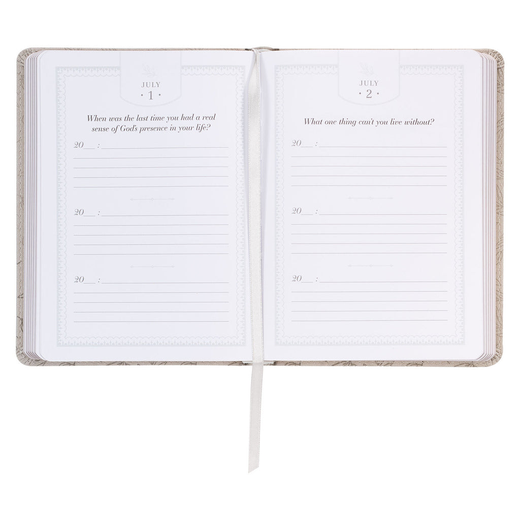 By devoting five minutes a day to answering the thought-provoking question of the day, you can track your evolving thoughts over time. Deep reflective questions, such as "What are you waiting on God for?" and "Which of the disciples describes you?" are part of this Christian women's journal.