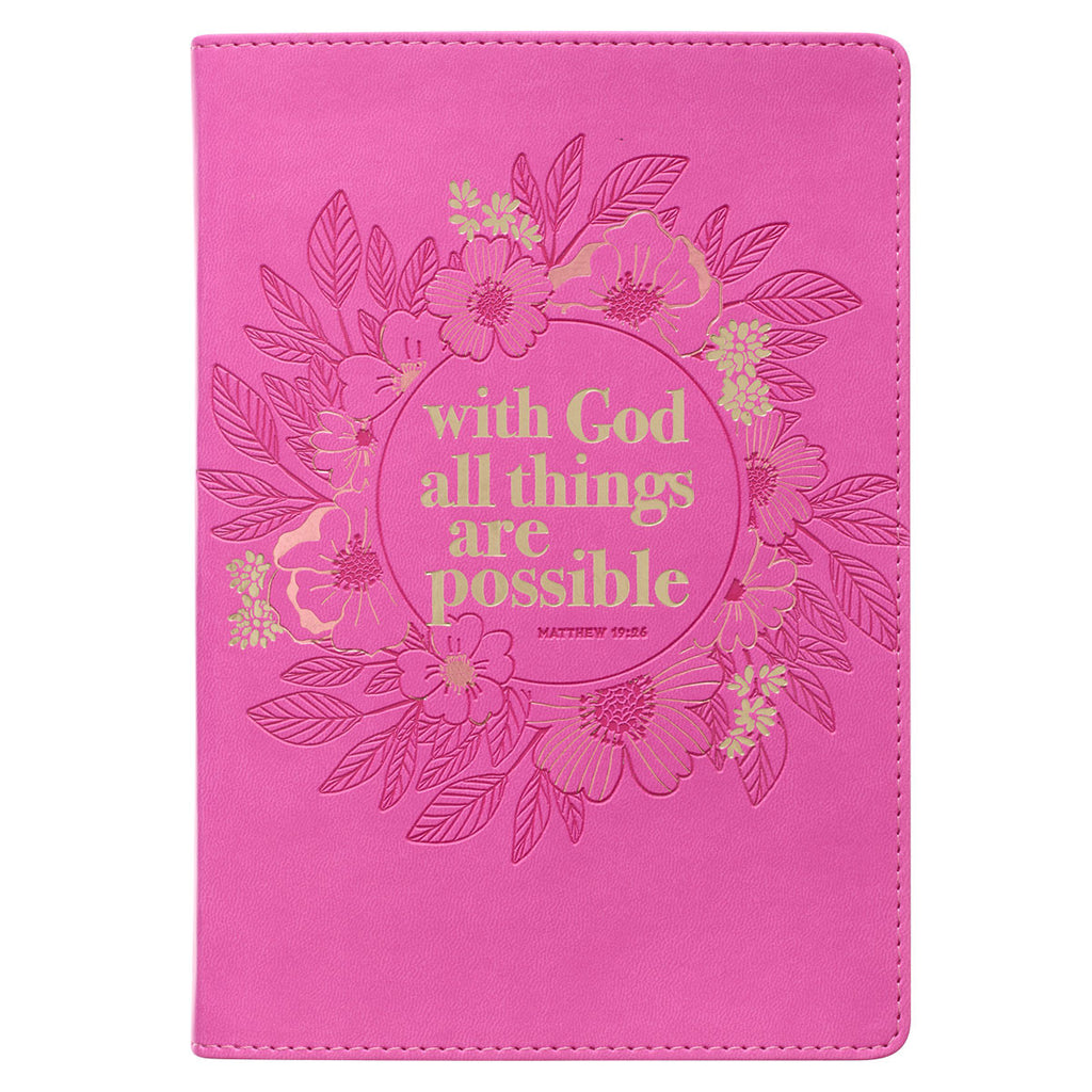 The pretty in pink cover of the All Things Are Possible Pink Faux Leather Classic Journal brings a message of confidence to your day. As you write out your prayer requests within this journal, know that nothing is too big to bring before the almighty God.