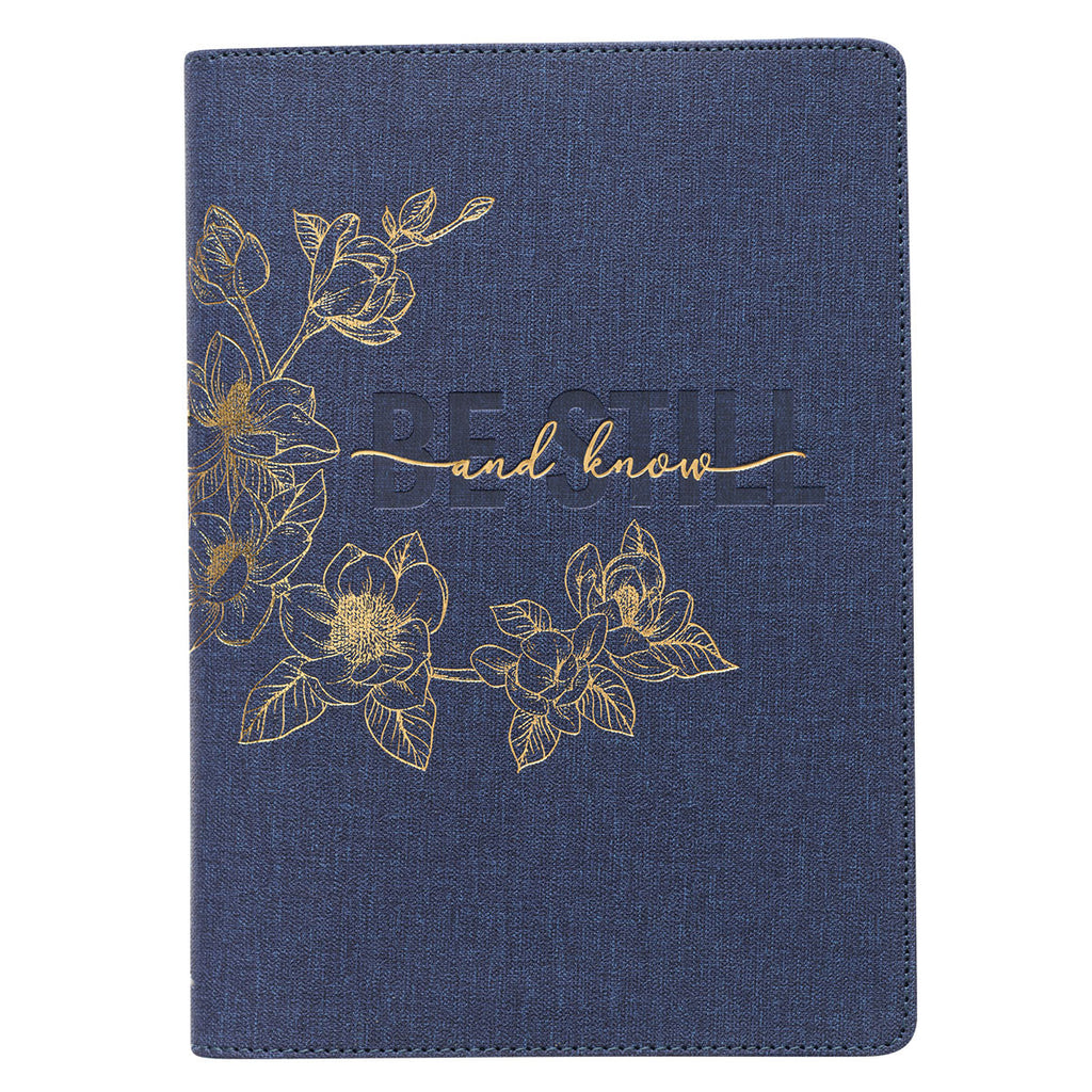 This zipped journal will remind your mom, daughter, or niece that though life may be unpredictable, God remains steadfast. Bring encouragement to your loved ones when you gift them the Be Still Navy Denim Faux Leather Journal with Zipped Closure.