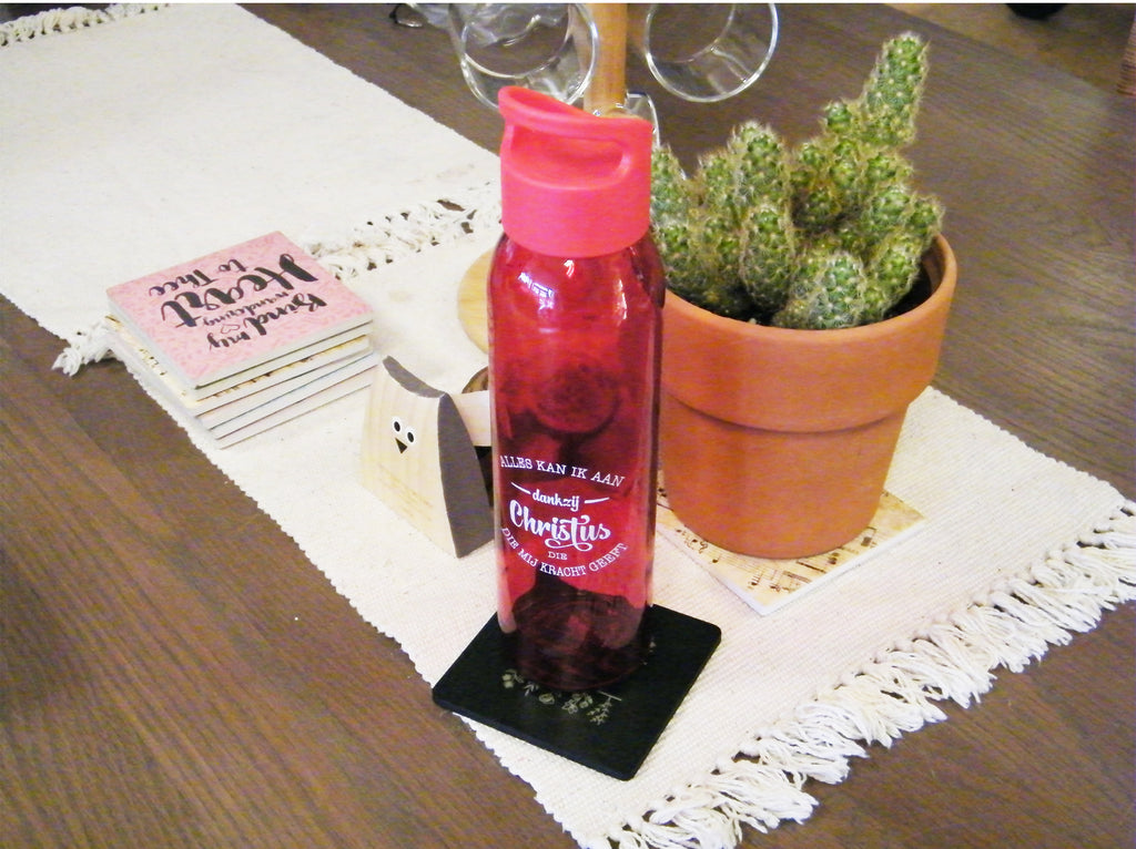 Met een ruime 470ml kun je wel even blijven drinken. De fles is nit geschikt voor koolzuurhoudende dranken.