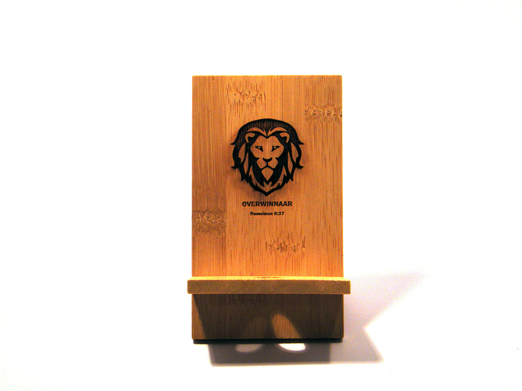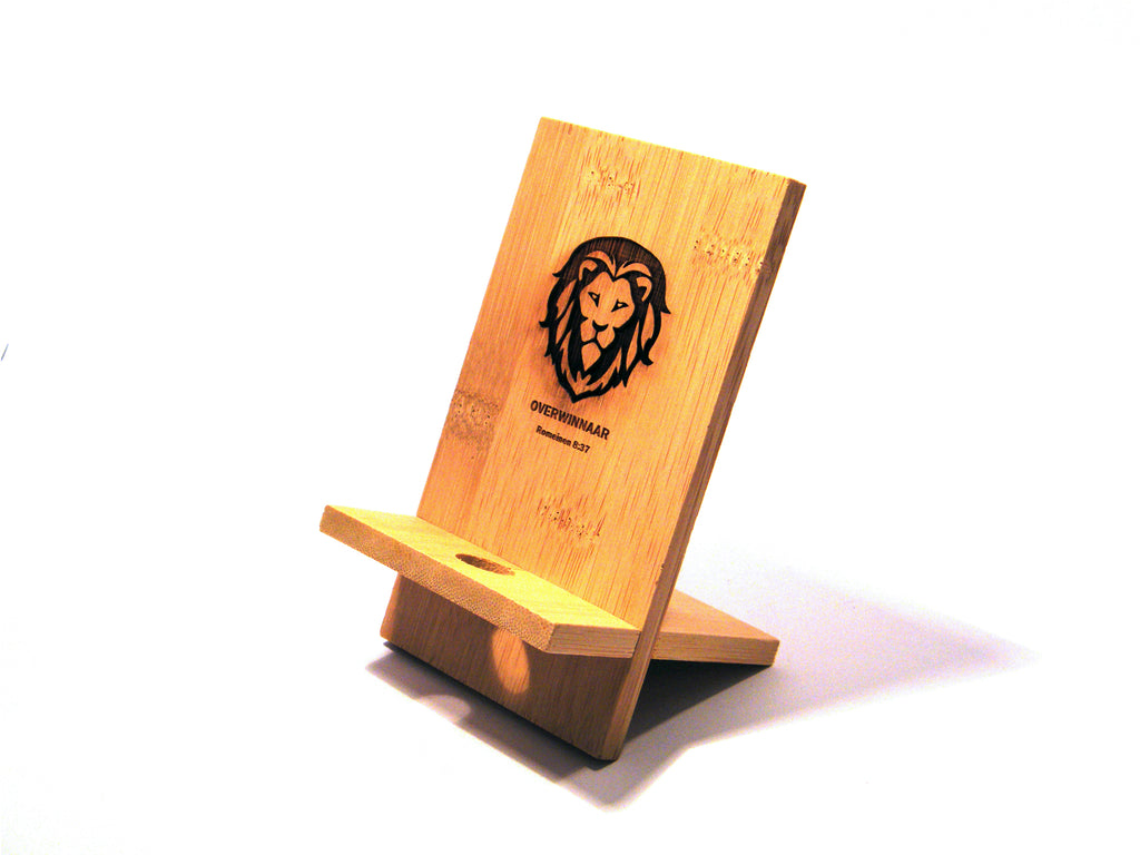 Bamboe telefoonhouder bestaande uit twee delen welke je in elkaar schuift. Perfect brievenbus item!. Bamboe is een natuurlijk materiaal waardoor kleur per item kan verschillen.