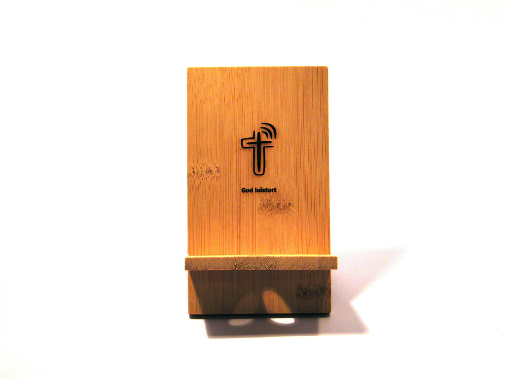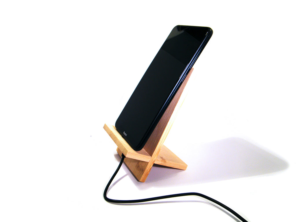 Bamboe telefoonhouder bestaande uit twee delen welke je in elkaar schuift. Perfect brievenbus item!. Bamboe is een natuurlijk materiaal waardoor kleur per item kan verschillen.