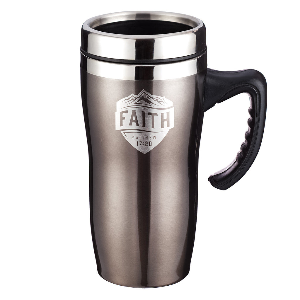 Inspire your son s or daughter s faith to arise with the Faith Stainless Steel Travel Mug which was created with the verse from Matthew 17 20 in mind There may be times in your kids lives when their faith isn t as strong and they could use a reminder as they go through their days Let the Matthew 17 20 Stainless Steel Travel Mug be a source of comfort with its Scripture reference of Matthew 17 20 on the front and with the “Faith” sentiment and hot beverage on the inside