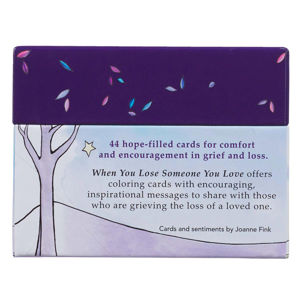 Use the cards in When You Lose Someone You Love Boxed cards Set as part of your own healing journey or give them to a friend who has lost a loved one and struggles with grief. You can use these comforting cards as conversation starters, note your prayer requests, journal your thoughts or even add them to a scrapbook to celebrate your loved one. When You Lose Someone You Love Cards to Color and Comfort is a beautiful way to say you care when there are no words.
