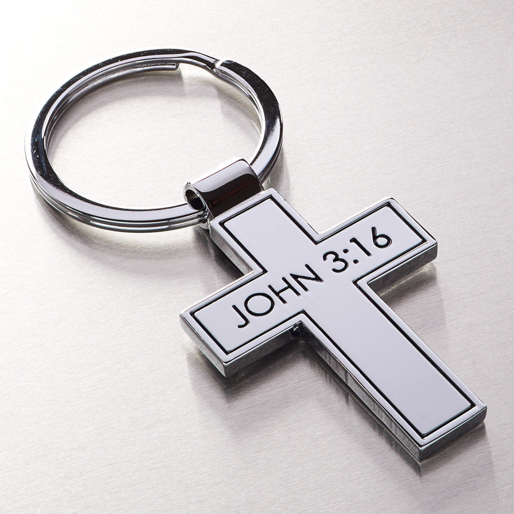 Carry an empowering reminder of Christ’s sacrifice for you with the John 3:16 Cross Metal Keyring. Wherever you go, whether you’re catching up with a friend over coffee or heading to the office, the cross keyring will symbolize your faith and devotion to Jesus. Give the John 3:16 Metal Keyring to you husband, son or father, and they’ll be encouraged to take up their cross and keep following Christ’s ways. You can also preach the beautiful truth of eternal life when you give this Christian gift to someone in your life who doesn’t know the truth or believe in Jesus yet.