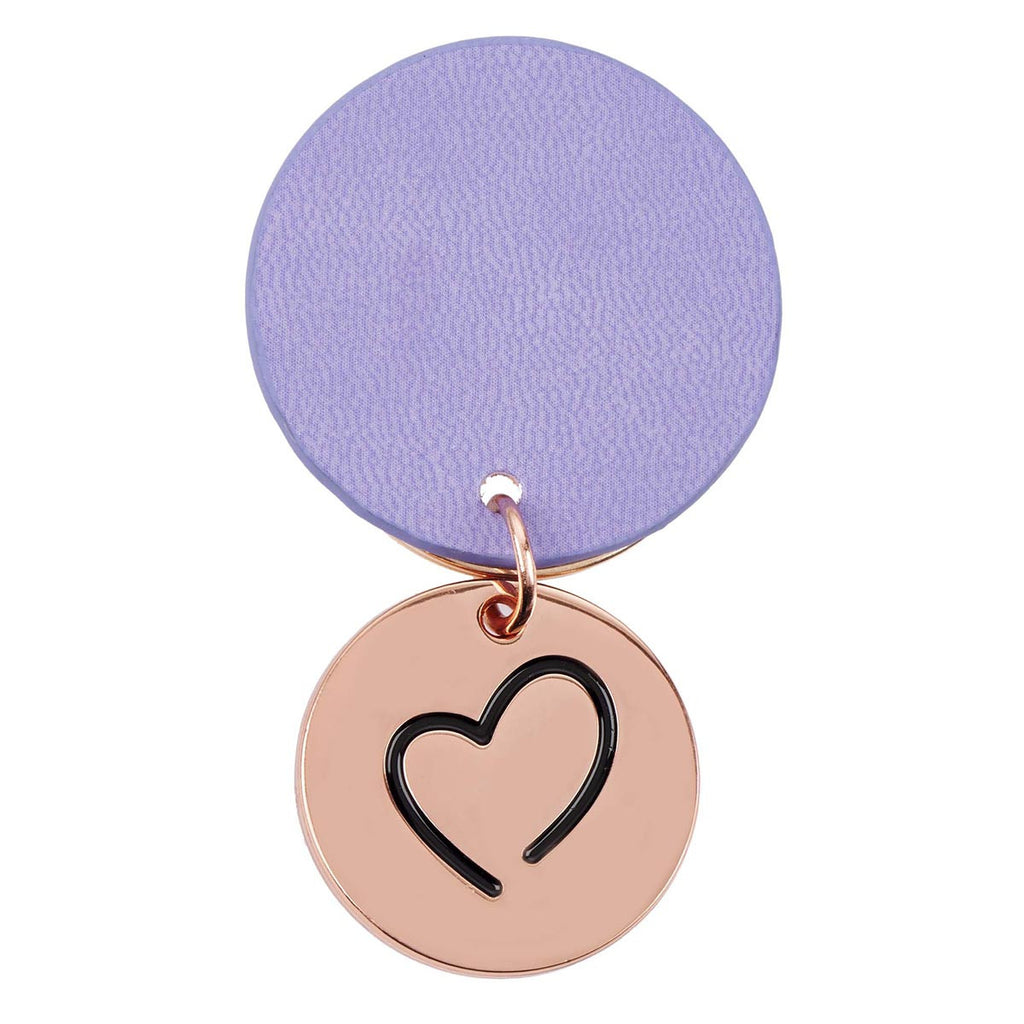 The sturdy 1-inch split keyring in rose gold is big enough to hold all your keys and fobs. A lavender faux leather disc sets off the rose gold medallion stamped with the words "Be Brave," artfully scripted in a curly font.