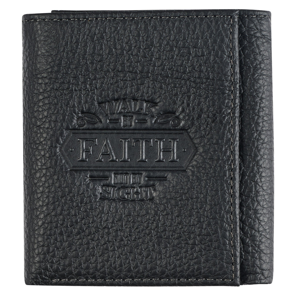 Encourage your husband every time he pulls out his Walk by Faith Black Genuine Leather Wallet to stay faithful to the teaching of Scripture.