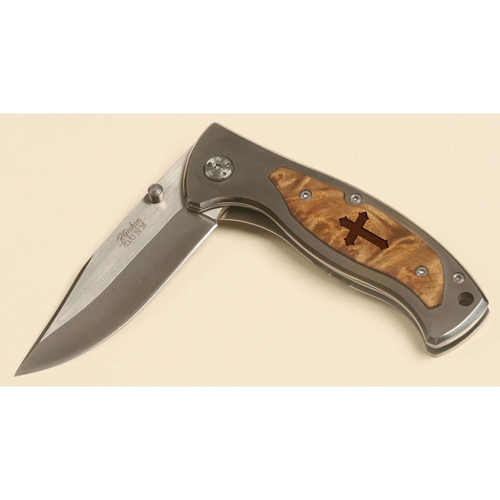 A pocket knife is a must-have tool for any outdoorsman - perfect for hunting, fishing, even whittling wood. This knife features a stainless steel blade, wood handle, and is engraved with an uplifting sentiment or image.