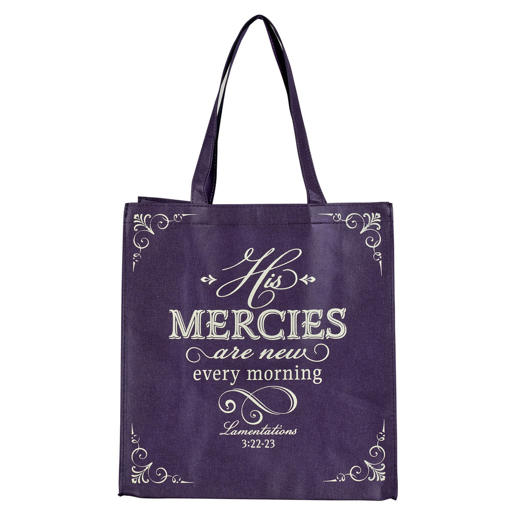 Use the eco-friendly and reusable His Mercies are New Purple Amethyst Shopping Tote Bag to carry around your books, groceries, and Bible study materials, or present a home-cooked meal to a needy family.