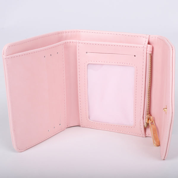 Inside, the wallet is thoughtfully designed to meet your everyday needs. It features a spacious cash compartment, three card slots, a clear ID spot for quick access, and a zipper pouch for coins or small items. Despite its compact size, this wallet offers plenty of storage. It measures 4.5″ L x 1.125″ W x 3.87″ H when closed and expands to 4.625″ L x .25″ W x 10.625″ H when open, making it easy to carry in any handbag.