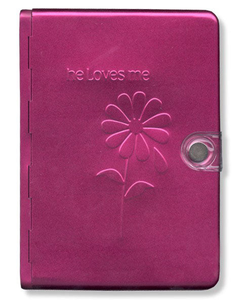 Je hebt erom gevraagd, nu heb je hem. Een nieuwe metalen Bijbel in een veelgevraagde kleur. Binnenin spreekt de New Living Translation, tweede editie jouw taal. Aan de buitenkant een ultrahip omslagontwerp waar trendy jongvolwassenen dol op zullen zijn. Roze metalen omslag met madeliefjesmotief ""He Loves Me...""