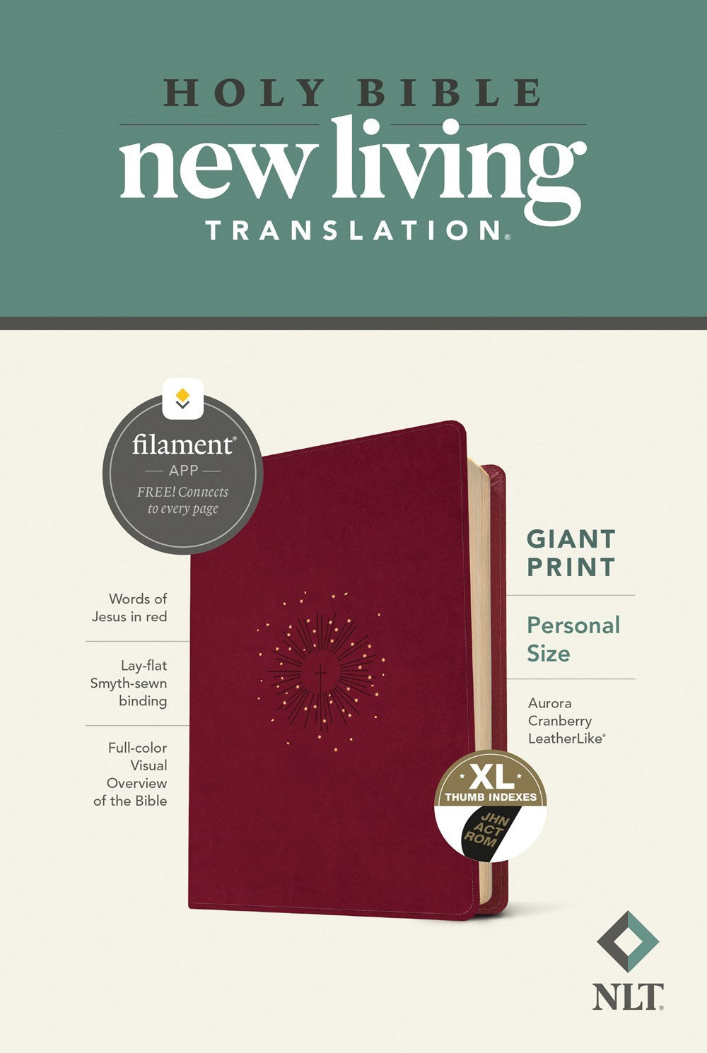 NLT Persoonlijke Grote Reuzendruk Bijbel/Filament Ingeschakeld - Aurora Cranberry LeatherLike Geïndexeerd