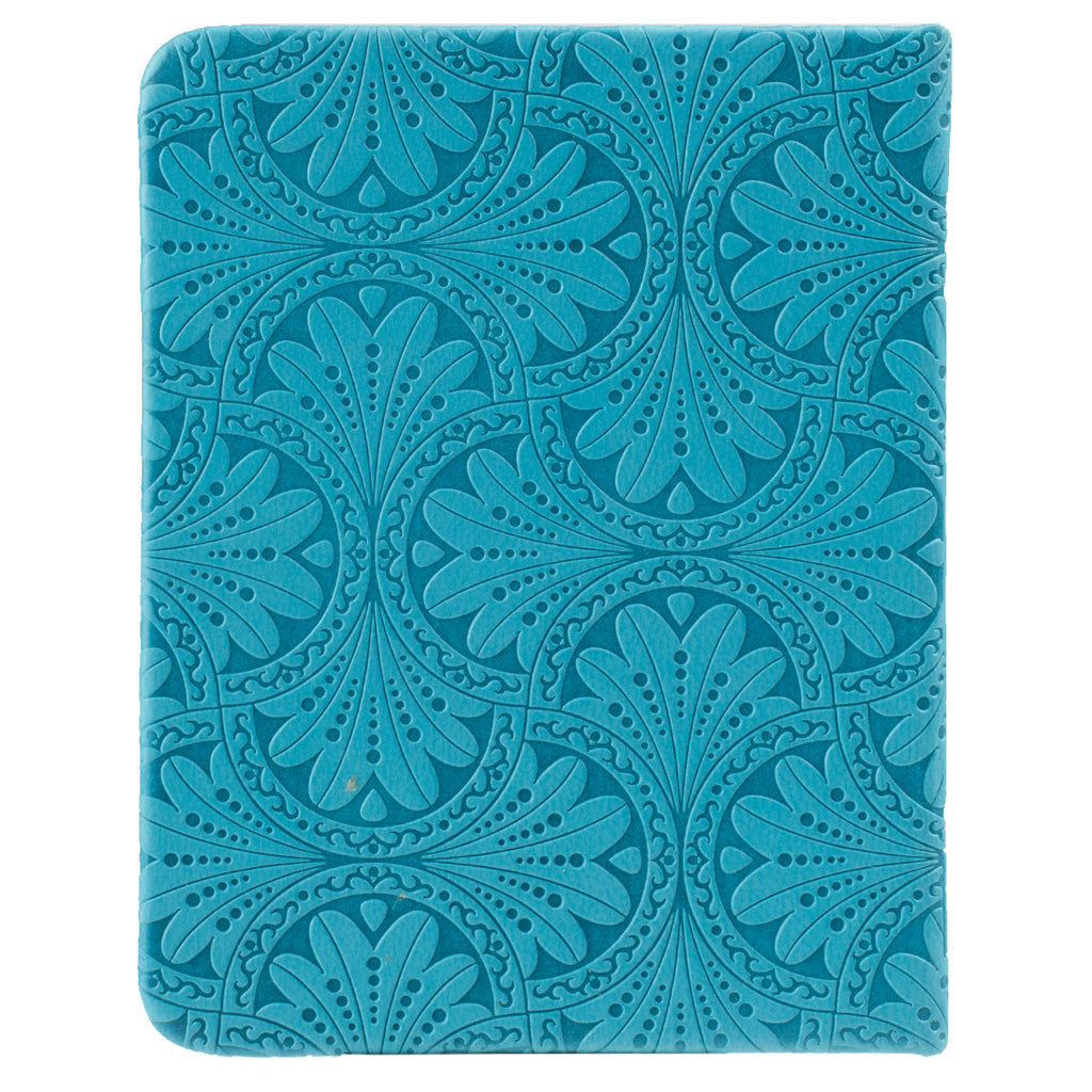De titel "Grace" en het ontwerp zijn in reliëf aangebracht op de flexibele, blauwgroene imitatieleren voor- en achterkant. De pagina's met een vergulde zilveren rand en een bijgevoegd leeslint creëren een vrolijke verpakking voor de inhoud.