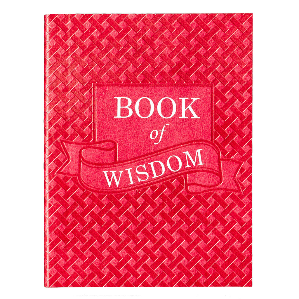 "Boek der Wijsheid", een inspirerend geschenkboek met Bijbelverzen en citaten. LuxLeather flexcover met reliëfpatroon; 96 pagina's; 7,6 x 10,2 cm; klein zakformaat."
