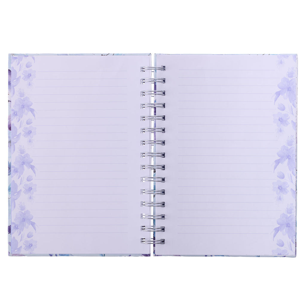 Paarse bloemen op de omslagen en pagina's van het Purple Posies It Is Well With My Soul Large Wirebound Journal zorgen voor een gevoel van vrede in al uw schrijfsels en krabbels.