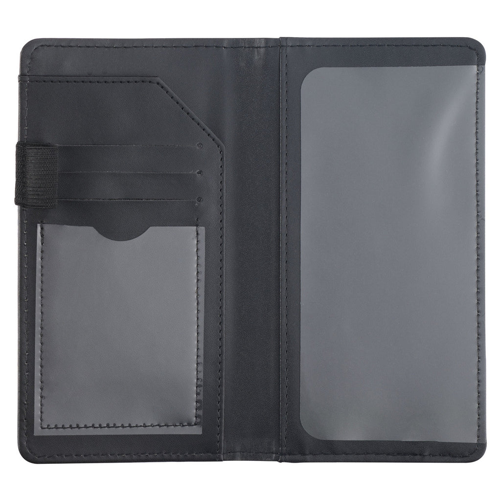Sterke stiknaden langs de randen van de chequeboekhouder zorgen ervoor dat u hem jarenlang kunt gebruiken. Binnenin de chequeboekhouder vindt u een insteekvak met drie kaarthouders voor creditcards en betaalpassen, een transparante ID-houder en een penhouder. Een plastic vak is inbegrepen voor duplicaatcheques.