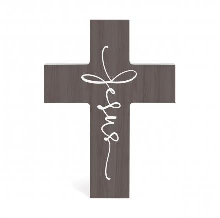 Klein houten kruisje dat een echte blikvanger is aan de muur of op een bureau.