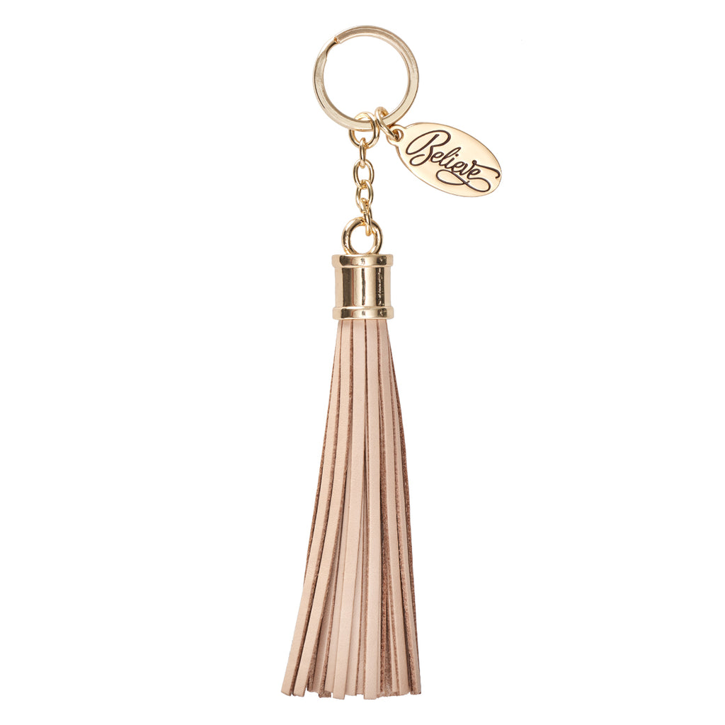 De beige Believe-sleutelhanger maakt een gedurfd statement en moedigt ons aan om in God en Zijn beloften te geloven. Deze beige sleutelhanger is een attent cadeau met een leren kwastje en een bedeltje met het woord "Believe". Het is een perfect cadeau voor moeders, dochters, zussen of vriendinnen, ongeacht de gelegenheid.