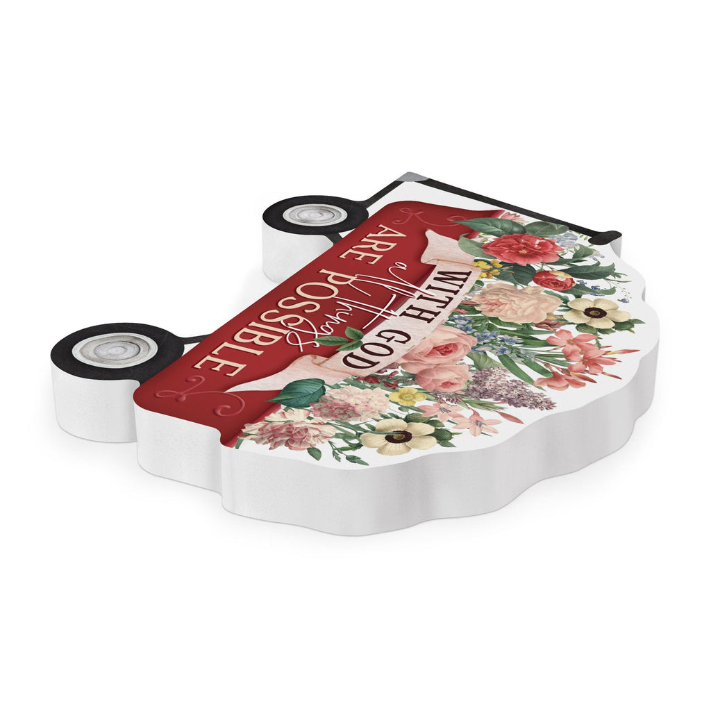 Dit stuk, gesneden in de vorm van een wagen, heeft leuke, opvallende kenmerken en is voorzien van een inspirerende tekst. Een geweldig cadeau en perfect om neer te zetten op een bureau, kindercommode of aanrecht.