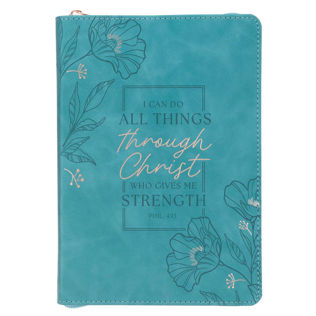 Alle dingen door Christus Fil. 4:13 Dagboek Klassieke Zip Teal