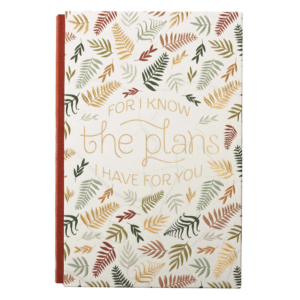 De Plans Fall Leaf Quarter-Bound Journal is uitgevoerd in zachte aardse tinten en bevat uw hoop, gedachten en gebeden voor de komende jaren, zelfs wanneer Gods plannen voor uw toekomst misschien niet duidelijk zijn. Dit dagboek herinnert u eraan dat u erop kunt vertrouwen dat uw toekomst veilig is.
