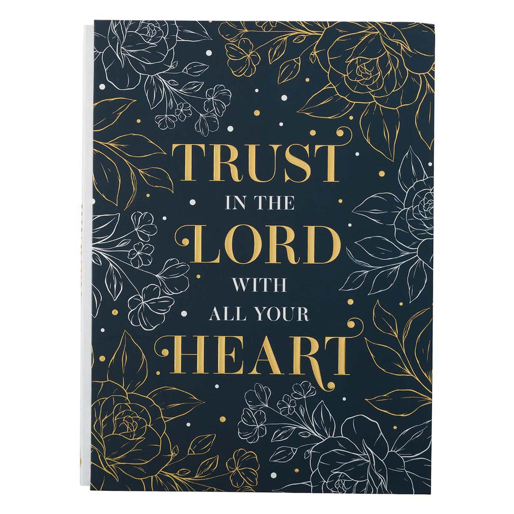 Begin een nieuw jaar met een nieuw dagboek wanneer u het Vertrouw op de Heer opent Navy Flower Outline Extra Large Kwartgebonden Notitieboek . Dit notitieboek is het perfecte cadeau voor elke jongvolwassene met een zwak voor glamour, glitter en een hart voor de HEER .
