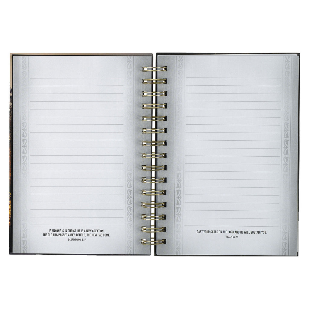 Leg je reizen en avonturen vast in de pagina's van het All Things Are Possible Pine Forest Large Wirebound Journal, wetende dat een Almachtige God je pad leidt. Dit dagboek zal een trouwe metgezel zijn en een ruimte bieden om na te denken, te documenteren en de momenten die je leven vormgeven te koesteren.