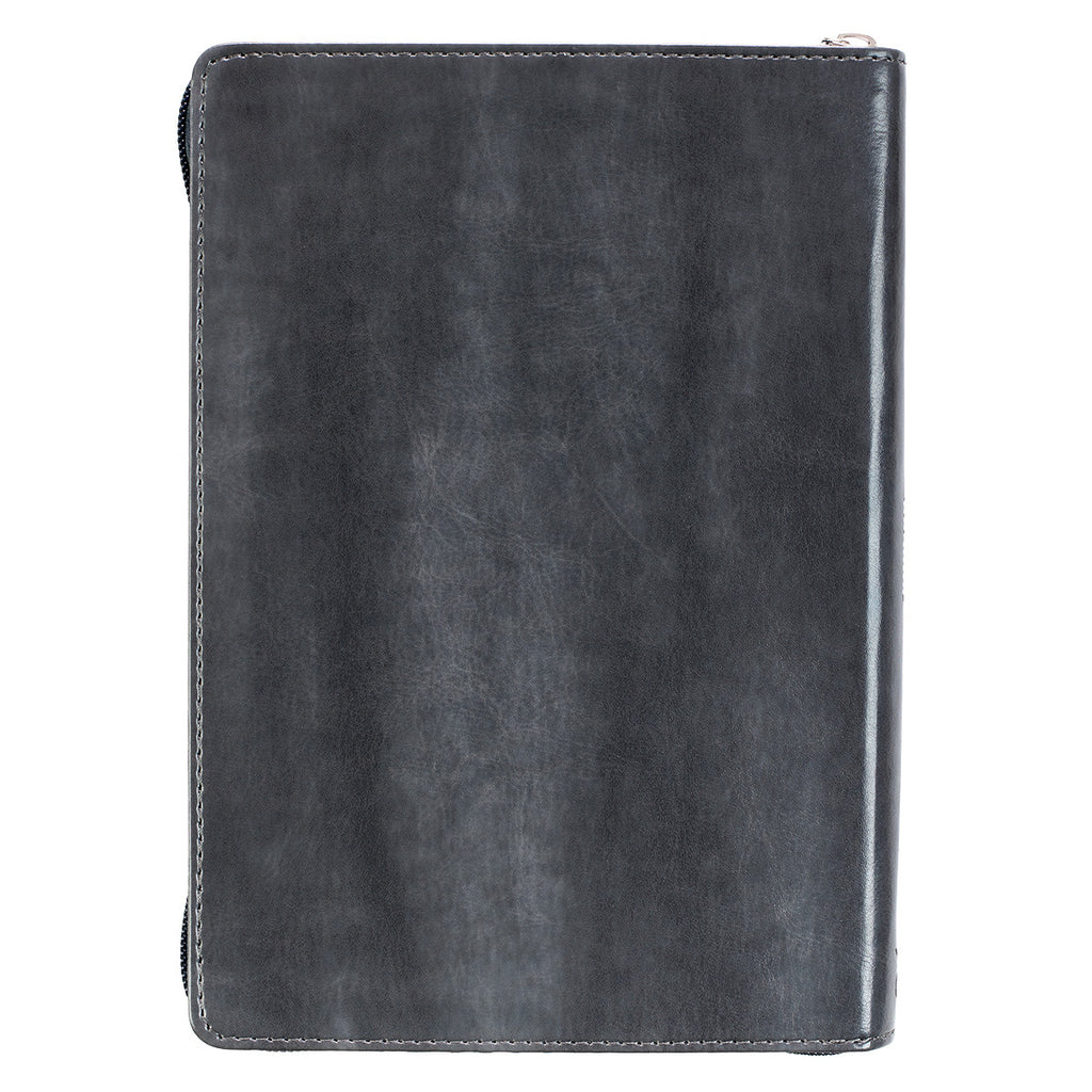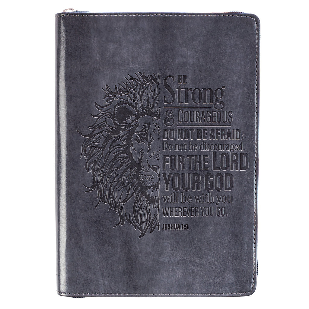 De Classic LuxLeather Journal bevat 400 gelinieerde pagina's en een lintje om je notities in de Be Strong And Courageous Classic LuxLeather Journal te markeren. De opvallende cover van deze grijze LuxLeather journal heeft een reliëfafbeelding van een halve leeuwenkop, afgewisseld met tekst uit Jozua 1:9. De ritssluiting zorgt ervoor dat kleine notities veilig in de journal bewaard blijven. Deze journal is een onvergetelijk cadeau in combinatie met de bijpassende pen of keramische mok.