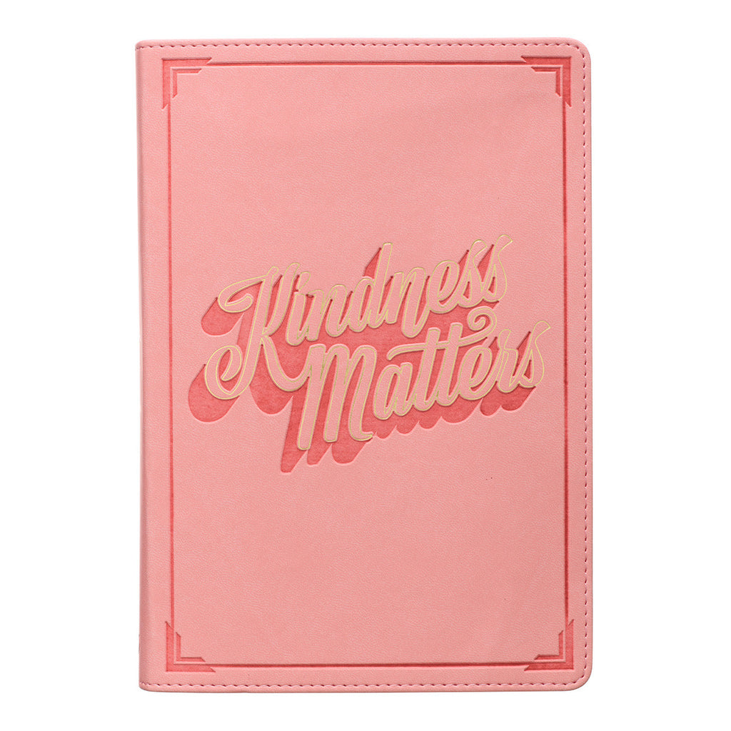 Gebruik je schrijfsels in het Kindness Matters Pink Faux Leather Classic Journal om de focus van jezelf af te halen en je energie te gebruiken om de wereld een betere plek te maken.