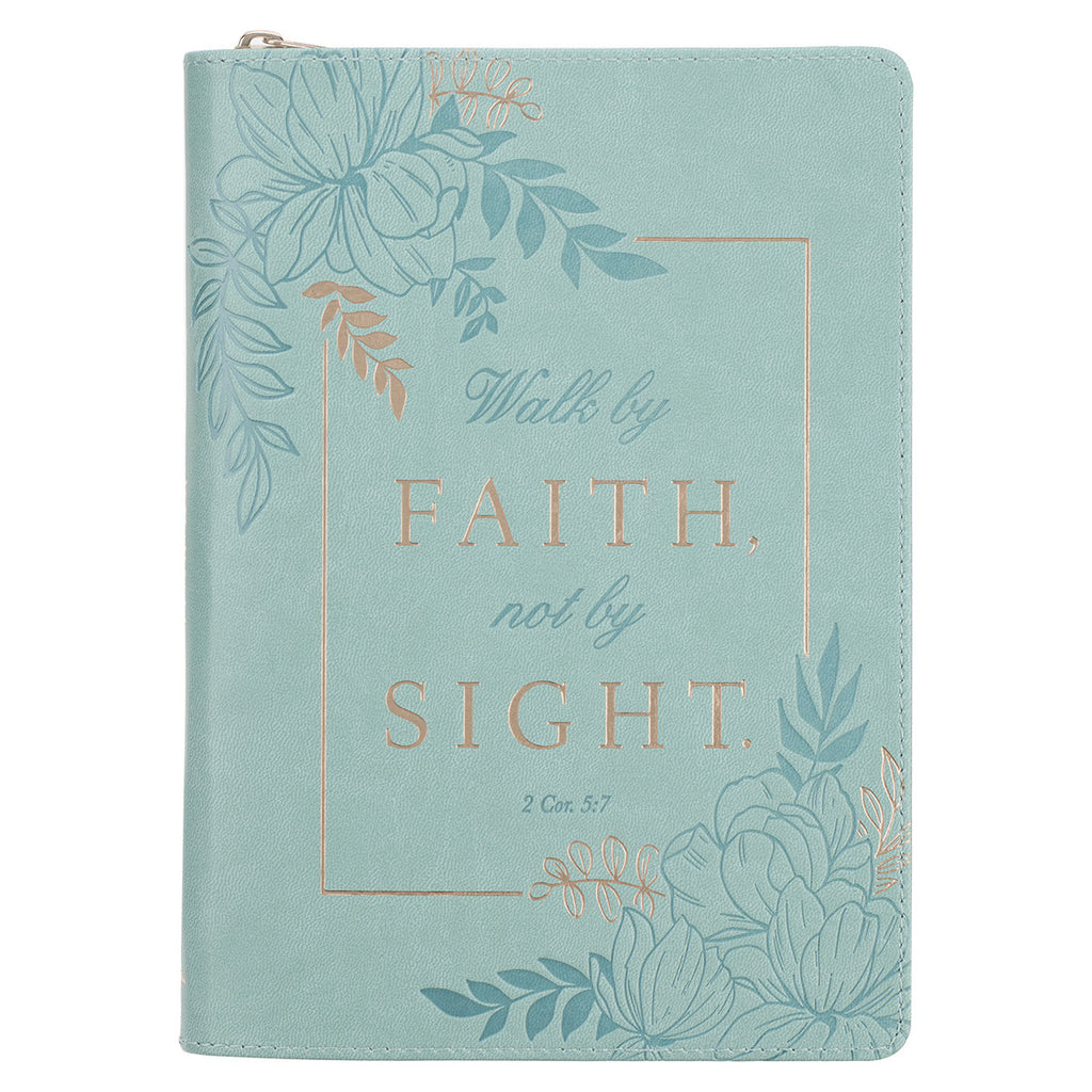 De troostende woorden van het Walk By Faith Teal Floral Faux Leather Journal met ritssluiting houden je gefocust op het ultieme doel: de eeuwigheid doorbrengen met de HEER. Gebruik het dagboek om jezelf te herinneren aan je doel in dit leven en daarna.