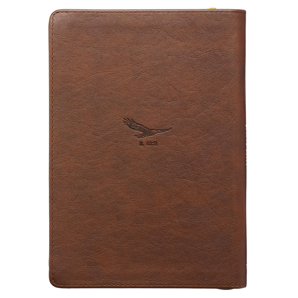 Het prachtige ontwerp van het Soar Brown Faux Leather Classic Journal met ritssluiting verbeeldt de majestueuze schoonheid van Gods schepping door middel van een adembenemend natuurtafereel met reliëf. Het draagt een hoopvolle boodschap van Jesaja die je aanmoedigt om geaard te blijven in de HEER voor je kracht. Het ontwerp spreekt zowel mannen als vrouwen aan. Het is het perfecte dagboek voor iedereen die onder de indruk is van de grootsheid van de schepping en graag tijd neemt voor zelfreflectie, dankbaarheid beoefent en bewust zijn gedachten concentreert.
