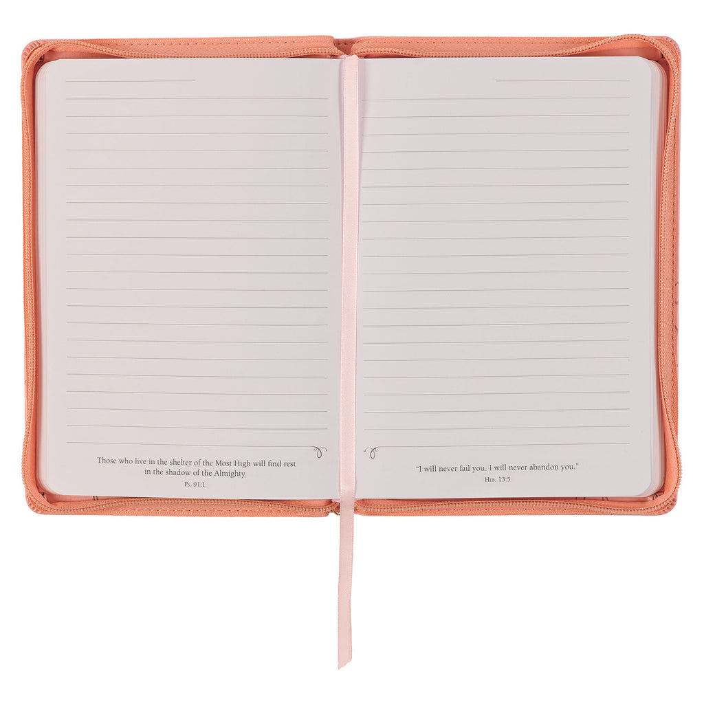 Het Mercy Blossom roze imitatieleren notitieboekje met ritssluiting herinnert u telkens wanneer u uw notitieboekje erbij pakt aan Gods oneindige genade.