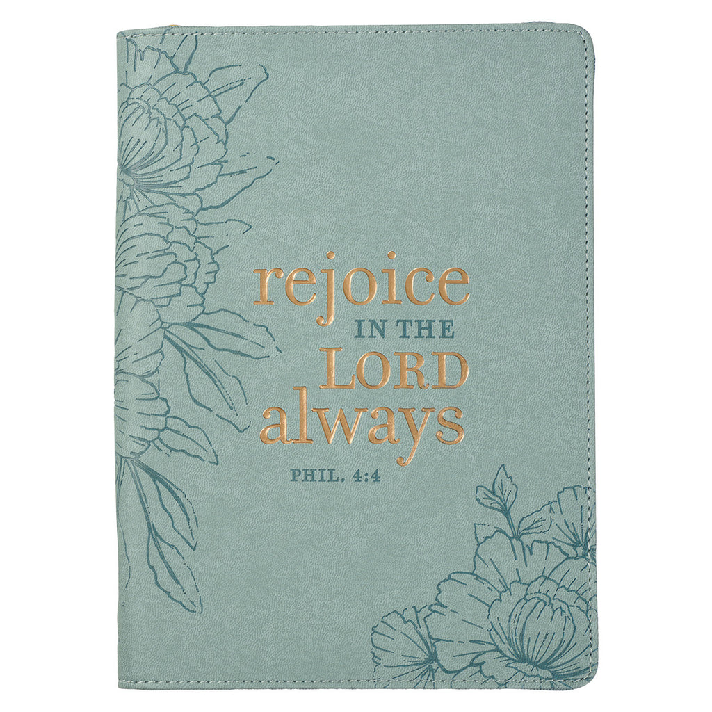 Dagboeken zijn geweldige cadeaus, dus pak het Rejoice Teal Faux Leather Classic Journal met ritssluiting in als kerstcadeau voor een familielid of als verjaardagscadeau voor een vriend.
