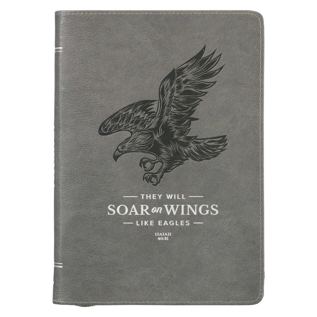 Ontdek de perfecte metgezel voor je ochtenddevoties of avondlijke dagboeksessies met het Wings Like Eagles Steel Gray Kunstleren Notitieboek met Ritssluiting. Dit notitieboek heeft een sereen en kalmerend ontwerp en creëert een sfeer van rust terwijl je je verdiept in de pagina's. De bemoedigende tekst en opbeurende boodschap zullen je inspireren en je geest vernieuwen terwijl je nadenkt over de betekenis ervan.